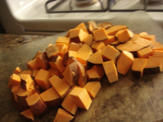- 2 large sweet potatoes, cut into chunks