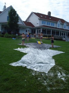 However, I must warn you… this was not any ordinary slip ‘n slide. This was the slip ‘n slide to put all other slip ‘n slides to shame. I’m talking cushioned, inflatable landing strips, extended tarps, dish soap, and multiple hoses.