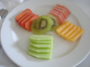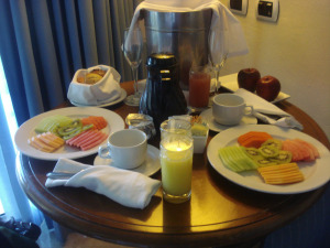 We wanted to take advantage of our room service, so we did ourder our breakfast in bed which was included in the honeymoon package. However, this turned out to be more of a breakfast appetizer, as I only could eat fruit off the menu!