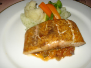 Two bites and it was GONE!! I’m all about presentation, but honestly… this girl is hungry! I was disappointed to say the least, and ready for my salmon (kind of)….