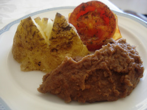 | beans, potato, grilled tomato (which was delicious) |
