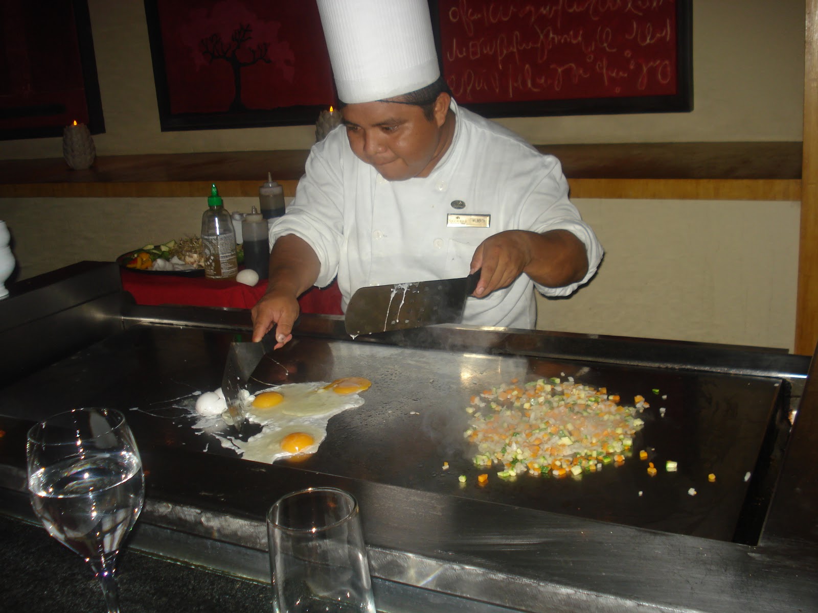 Our chef was super cute and tried so hard. I think he was new, but I couldn’t tell. All I know is he didn’t speak English, and no one could very well. I was trying to describe my allergies to them, but I don’t think they understood me very well. They ended up cooking me rice, veggies, and meat (which I didn’t eat) in the back separately.