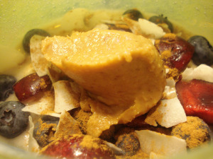 I’m kind of wary of saying this because I don’t want to admit it, but I think chocolate is giving my stomach problems lately. I am thinking back tot he last couple of times when I made my chocolate protein muffins and the same thing happened then as well. Now that I’m aware, I’ll have to test out my theory… but will be really upset if chocolate is the culprit. Digestable or not, the snack bowl below totally rocked my world last night.