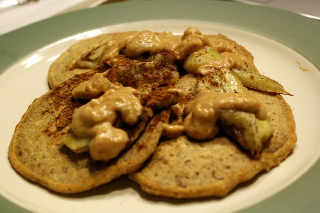 I topped mine with grilled bananas, cinnamon, and a peanut butter sauce (peanut butter thinned with almond milk and heated).