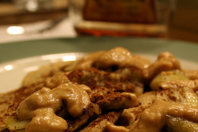 Peanut butter pancakes topped with grilled bananas? I think so.