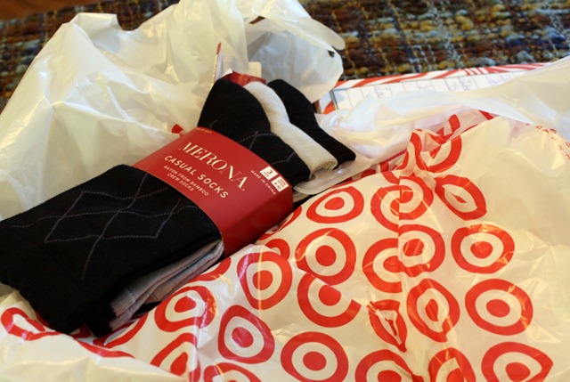 Little things make me happy — socks for instance. I was elated this afternoon when I finally remembered to buy black dress socks for work. Casual socks — for the old lady.