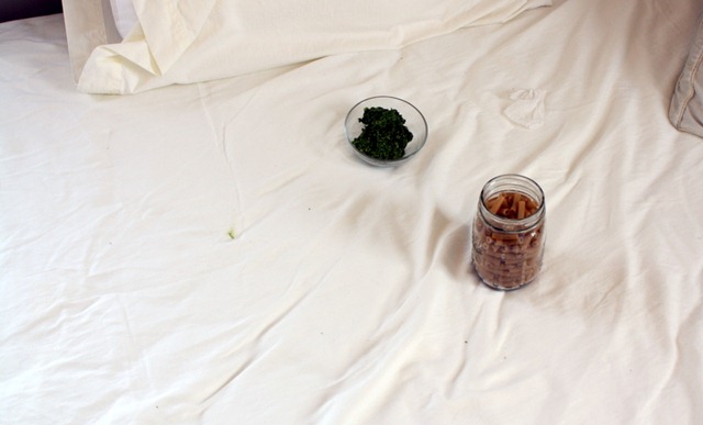 Since you’re all coming over though, I have to be honest with you — the best place for taking pictures is in my guest room on the bed. So, if you’re the lucky one who actually gets the bed, you’ll have to pretend like you never saw this pesto stain on the sheets.