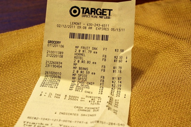 I normally do not go to Target, but I had a gift card that had $5 on it and wanted to use it. Low and behold, I couldn’t find my gift card once I got to the check out line. Go figure. I actually wanted to buy more cans of beans at Target, but did you know some of their canned beans have high fructose corn syrup in them? That’s just weird — and I am not a HFCS kind of girl.