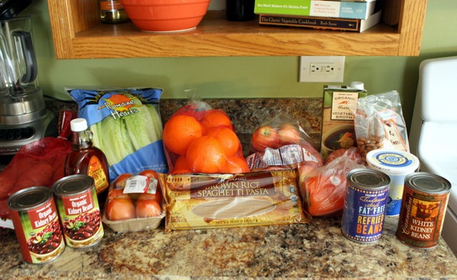 This week I went to three different stores with my detailed list and almost couponless bag. I have found it is really hard to use coupons on things such a produce or canned goods (ie: beans, diced tomatoes, vegetable broth) that we mostly buy. I’m working on it, but it’s hard!