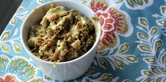Directions: Begin by combining your dry quinoa with the vegetable broth, minced garlic, and tomato paste. Bring to a rapid boil and reduce heat to medium. Add your salt, pepper, basil, garlic, and parsley. Simmer for 15-20 minutes until most liquid has been absorbed. Prepare your broccoli (I used frozen, so I heated it up) and add to the quinoa once it has been cooked. Add your white beans and heat through.