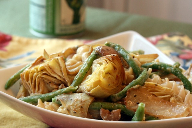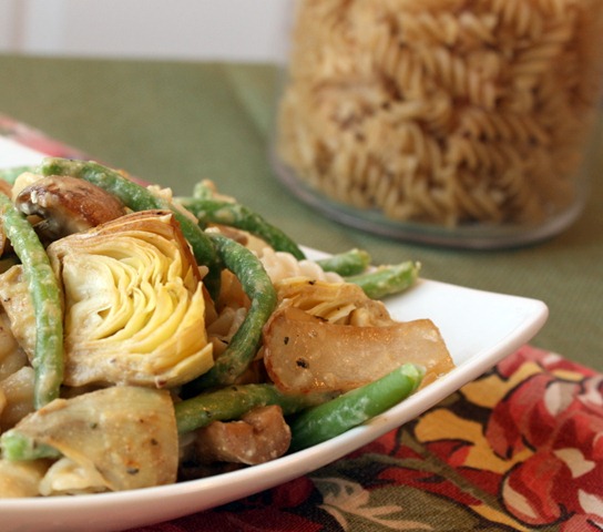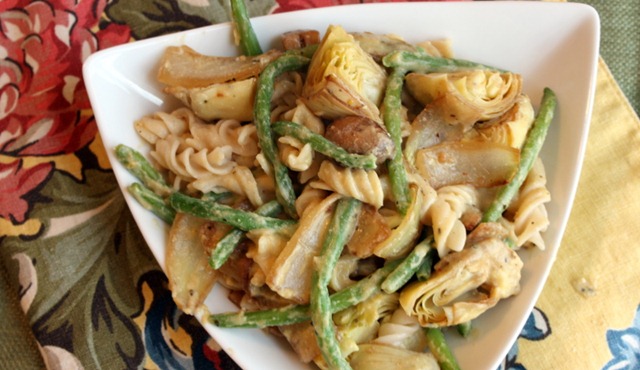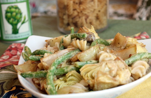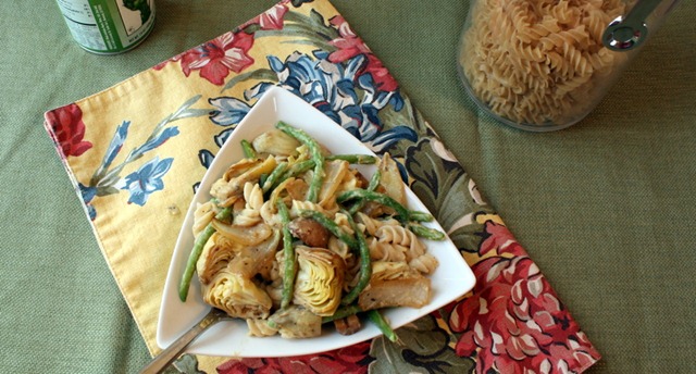 Creamy Artichoke and Green Bean Rotini (serves 2)