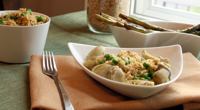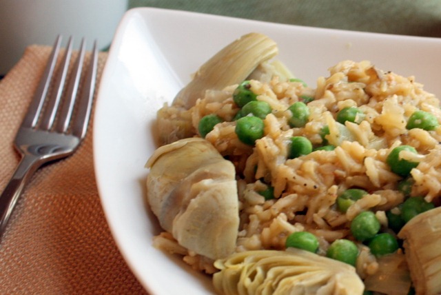 Bowl your rice and top with artichoke hearts.