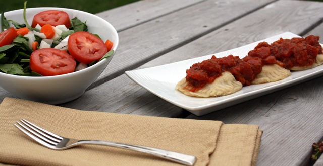 Spinach and Mushroom Ravioli (makes 8 ravioli)