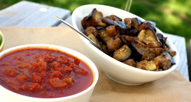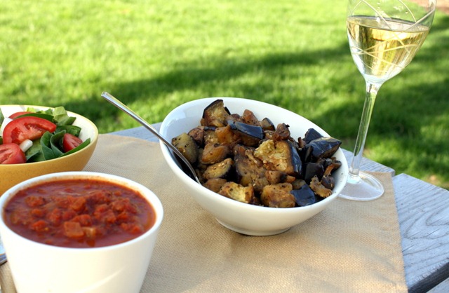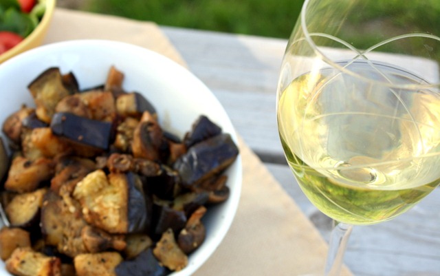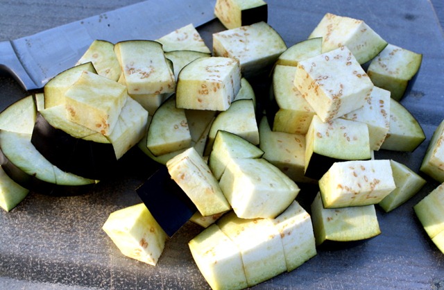 - 1 eggplant, cubed in 1” pieces