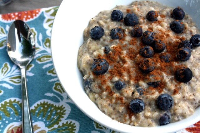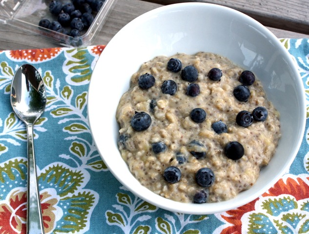 So cold oats it was. But they’re not any kind of cold oats. They are Katie’s voluminous oats trick. In the morning I just add a little more water and stir, stir, stir, and then I add toppings to my heart’s desire. Which right now is vanilla protein powder, blueberries, and cinnamon (and peanut butter — duh).