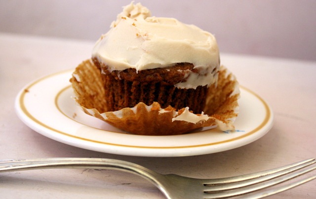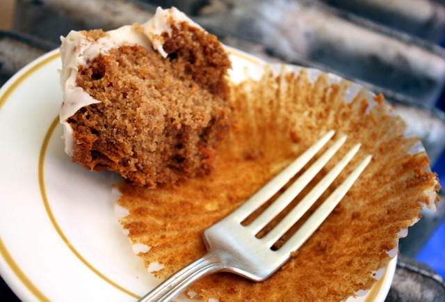 Gabriela and I both went with different cupcakes so we could taste test different flavors. She had the vanilla brownie and I had the carrot agave.
