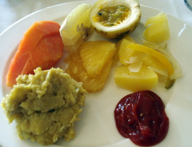 I usually had a banana with almond butter, a lot of tropical fruit, and some of the potato dish.