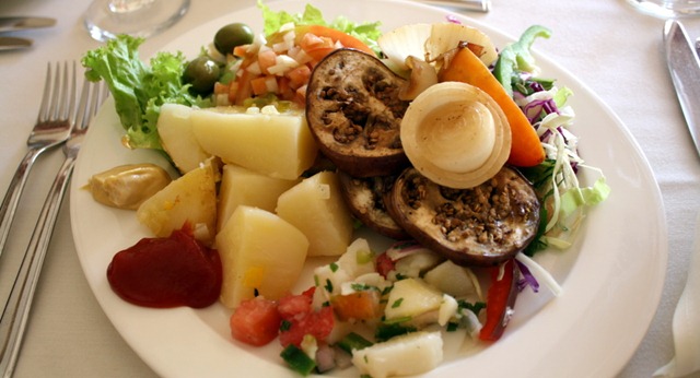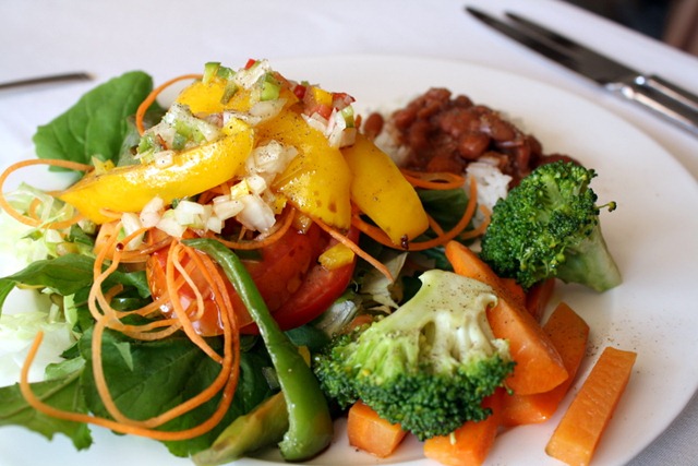 Lunch was also spent at a buffet for the most part. There was a salad bar station, fresh fruit, and a variety of hot dishes to choose from. In the hot dish section, there was always a vegetarian option — rice and beans, grilled vegetables, baked potatoes — just to name a few.