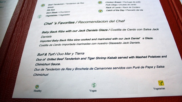 The best part about The Steakhouse was their menu code — it told you what was vegetarian and/or vegan!