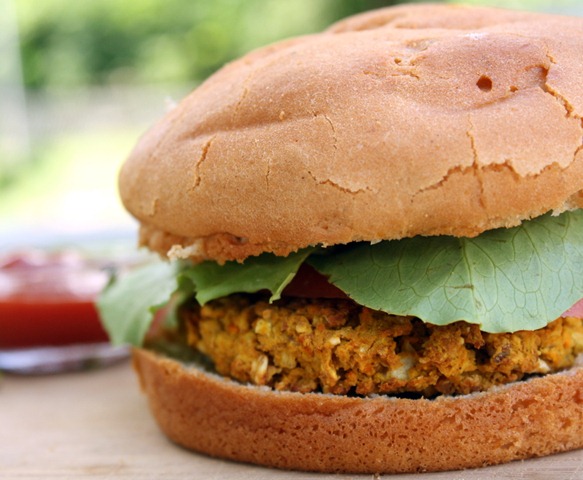 Directions: Place your oats, carrots, onion, and garlic cloves in a food processor (note: if you don’t have a food processor, use a blender to break apart the oats and hand shred/mince everything else). Once the carrots are shredded, add your chickpeas to the food processor and pulse until the mixture is still “chunky”. Add your spices and barbecue sauce and pulse to mix. Using your hands, divide the mixture into six equal sized portions and roll into balls, flattening them to make patties. Each patty should be about 1/4 — 1/2 inch high. On a greased sheet (or silpat), bake the patties in a 350 degree Fahrenheit oven for 20 minutes on each side.
