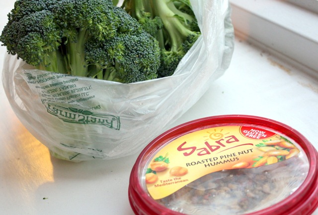 I <3 sabra pine nut hummus!!! Broccoli + hummus together are even better if you blanch the broccoli first. It's still crisp but it gets very bright and the flavor of the broccoli gets brought out.