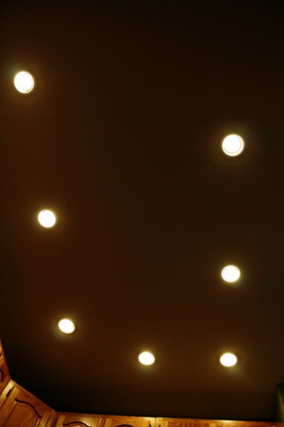 Monday I came home to find my house in disarray, two men in my attic, and holes in my ceiling. Many would be a little upset at that situation. However, I was leaping for joy (literally) through my hallway. After seven hours of hard work and crawling around in the attic for God knows how long, the Husband and my father in law successfully installed those lights.
