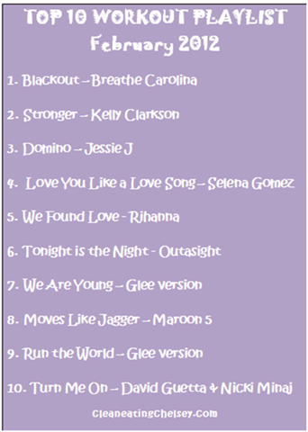 What a fun mix. There are some songs that I get sick of really fast… but Moves Like Jagger still gets me excited every time I turn on the radio. I love that you included some Glee. I remember I downloaded Blackout several months before it was popular for free on Itunes. I felt so cool when it started getting radio airplay and I already knew all the words.