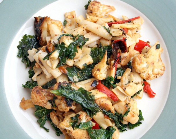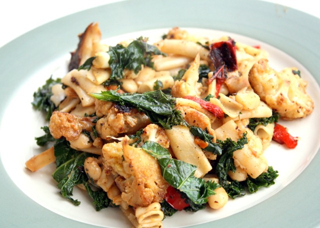Roasted Vegetable and Kale Pasta (serves 3-4)