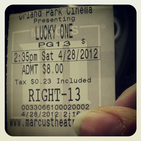 After lunch, we went over to a theater down the road. We originally planned to see Titanic in 3-D, but earlier in the week I convinced her that we should go see Lucky One (okay, I didn’t have to do much convincing!).