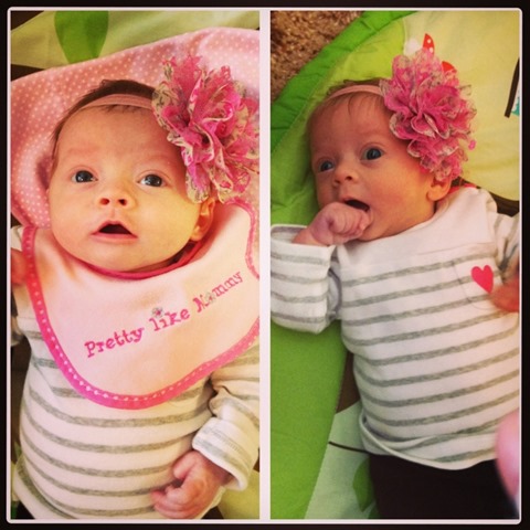 Emmerson is definitely the one in the front… she looks a lot more like you (IMHO). Brooklyn looks more like your hubs (based on the maternity shoot I saw a while back). Both are beautiful itty bitty babes!