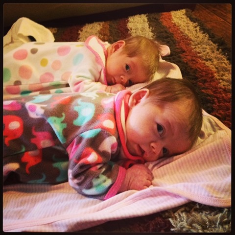 5. We are working on cooing and smiling over here. We aren’t there quite yet, but the girls are trying so hard!