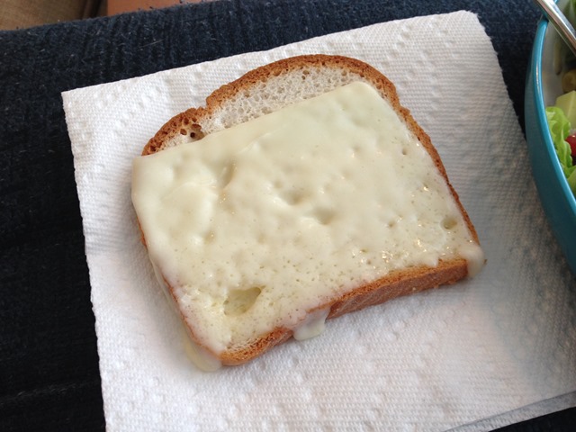 On the side I had a slice of gluten free bread with melted mozzarella cheese.