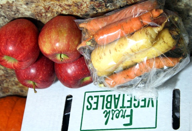 We also received four apples and a huge bag of yellow, orange, and purple (!!!!) carrots. Thankfully I have my celeriac from last week soon, so I have a feeling some soup will be on the menu next week!