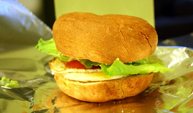 Enter in my newest lunch obsession. I took it upon myself to buy a bag of Udi’s plain bagels over the weekend, and now I am wondering what in the world took me so long. I’ve eaten this sandwich three times since Saturday, and I’m a little upset I only have one bagel left.