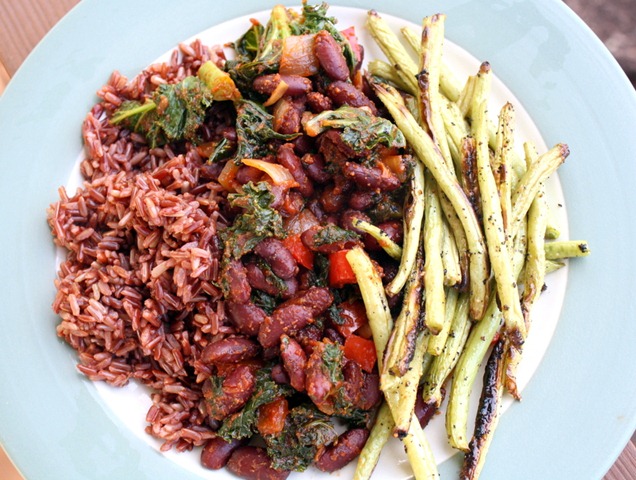 What we served with the rice was a little random, but it worked. I roasted up some green beans in some olive oil, garlic, salt, and pepper at 425 for about 30 minutes.