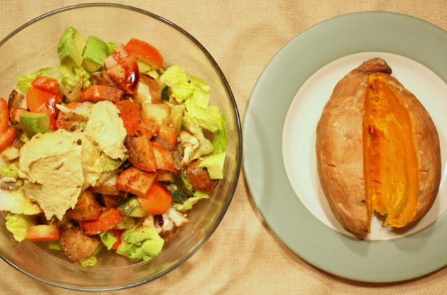Friday: Garden Salad with Avocado and Hummus, Baked Sweet Potato