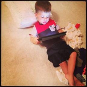 Depending on the day, Lydia would sometimes need to go to bed before Jackson. The struggle was what to do with Jackson while I got Lydia asleep if daddy wasn’t home. She got used to nursing in the quiet and being laid down in a quiet darkened room, and having Jackson in there just wasn’t going to work. I would stress out about it and get frazzled. I tried putting him in his crib with the lights on and some toys, but he went hysterical. Lydia would be screaming because she was tired. Eventually I gave him the iPad and had him sit right outside the door for just a few minutes while I got her settled for sleep. It isn’t a perfect method because he sometimes walks in, even still, but it’s the best I have so far. Suggestions?? Anyone??